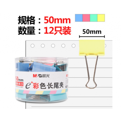 晨光 M&G ABS92738 彩色长尾夹 (50mm 12枚/筒 单筒装)
