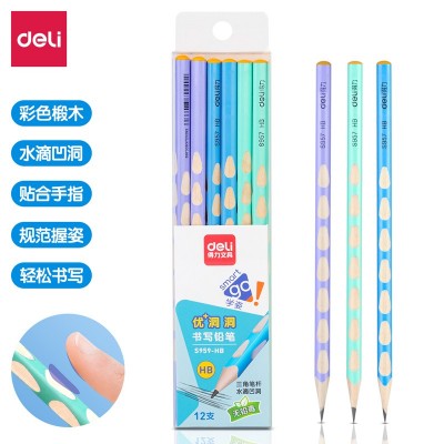 得力S959-HB_优 洞洞HB铅笔12支PET盒装(混)(12支/盒)(单位:盒)