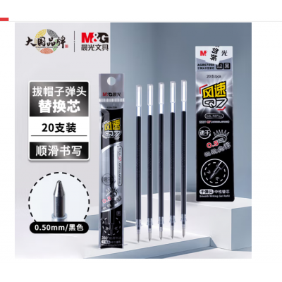 晨光AGR67098黑色中性笔芯 Q7风速拔盖0.5子弹头中性笔黑色替芯/支