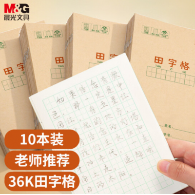 首页 > 办公用品 > 文具 > 晨光 K36124D 36K/14张田字格作业本 牛皮纸 软抄本 笔记本子 练习本簿 10本装