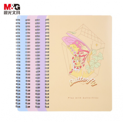 晨光(M&G)文具A5/60张螺旋双线圈本 记事笔记本子 学生本日记本 蝶影系列横线本手账本办公本 4本装APY7BZ50
