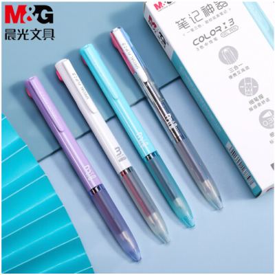 晨光T3402 0.38mm三色中性笔做笔记用抄写笔记神器水笔 多色笔合一多功能笔一笔多色红蓝黑笔三色按动中性笔