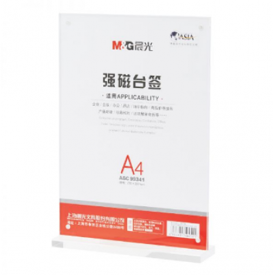 晨光 ASC99341 T型桌牌 竖式亚克力强磁台签展示牌 A4透明210*297mm(块).