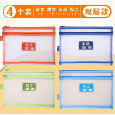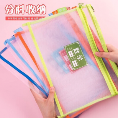 晨光(MG) 文具科目袋单层网纱学科拉链袋ADM929SR大容量牛津布透明网纱收纳袋学生用试卷文件 双层科目袋