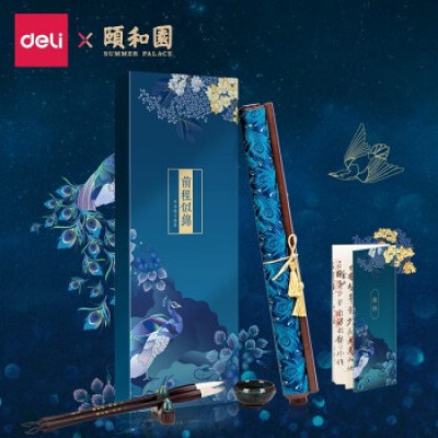 得力(deli)文房四宝毛笔书法套装(毛笔/墨锭/石砚/笔搁/水碗/镇尺) 颐和园水写布套装74268