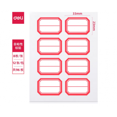 首页 > 办公用品 > 文具 > 得力(deli) 96枚23*33mm红框不干胶标签贴纸自粘性标贴姓名贴 7189