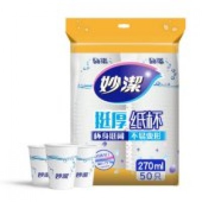 妙洁 纸杯一次性杯子 增厚咖啡杯商务杯 270ml*50只