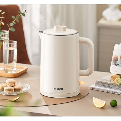 苏泊尔(SUPOR)烧水壶 电热水壶双层防烫开水壶家用大容量电水壶全钢无缝内胆开水壶上盖可拆SW-15T109A(米白)