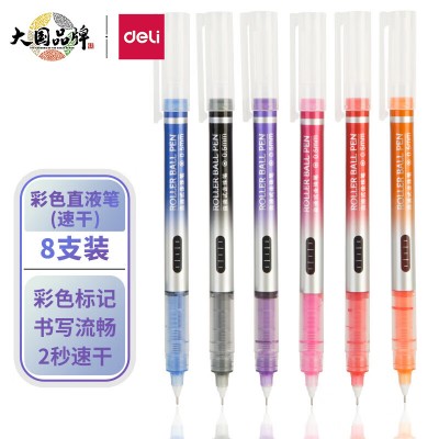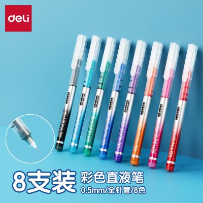 得力(deli)S855 彩色直液笔套装 多色彩色中性笔 0.5mm全针管学生签字笔中性笔 水笔走珠笔 笔记宝藏 8支/盒