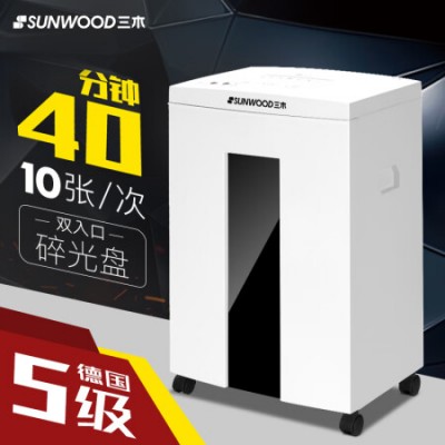 三木(SUNWOOD)S19 5级保密办公商用碎纸机 (单次10张 持续40分钟 21L 可碎纸,光盘,卡,回形针、订书针)