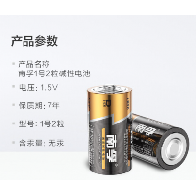 首页 > 电气设备 > 原电池和原电池组 > 南孚1号电池2粒