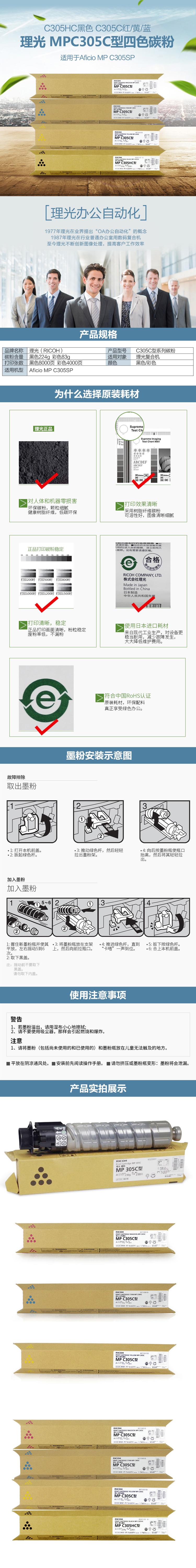 理光(RICOH)黑色彩色碳粉盒 MP C305HC型 适用 MP C305SP C305HC黑色