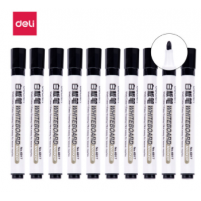 得力(deli)白板笔6817 色泽明亮可擦易擦 黑色10支/盒
