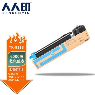 人人印 TK8118蓝色粉盒 适用京瓷8124粉盒ECOSYS M8124cidn硒鼓 TK-8118C墨粉盒 打印一体复合机墨盒