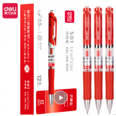 首页 > 办公用品 > > 得力 S01中性笔 0.5mm 红色 12支装