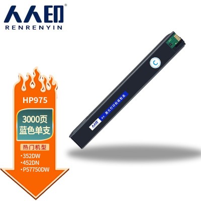 人人印975A蓝色墨盒适用惠普HP 477dn X452DN 452DW 975A 477dw 552dw 577dw/z MFP P55250打印机