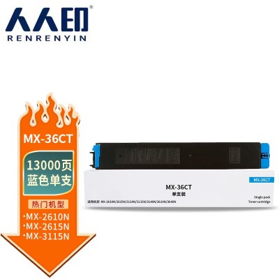 人人印MX-36CT蓝色粉盒适用夏普SHARP MX-2618NC 3118NC 3618NC 2648NC 3148NC 3648NC墨盒墨粉盒碳粉