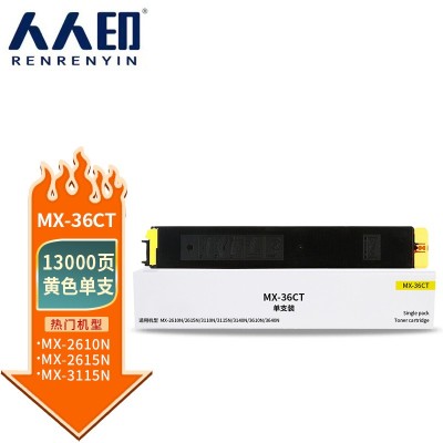 人人印MX-36CT黄色粉盒适用夏普SHARP MX-2618NC 3118NC 3618NC 2648NC 3148NC 3648NC墨盒墨粉盒碳粉