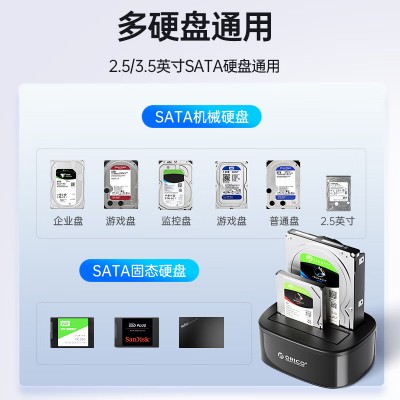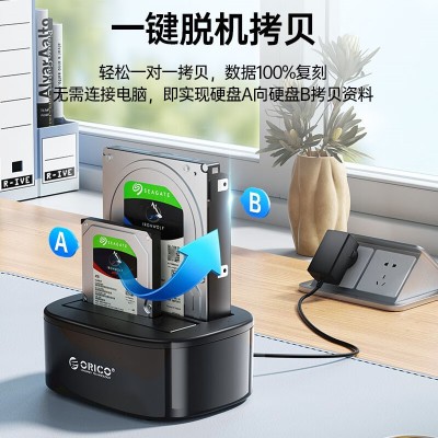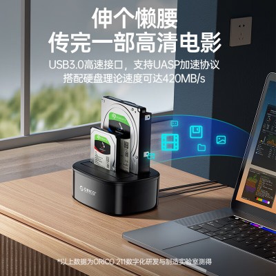 奥睿科(ORICO)6228US3-C 硬盘盒底座3.5/2.5英寸SATA台式固态机械SSD外置外接移动脱机对拷机备份盒子双盘位