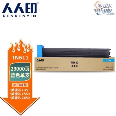 人人印 TN611粉盒蓝色大容量 适用美能达Bizhub C451 C550 C650墨盒 打印机碳粉盒 复合机墨粉盒