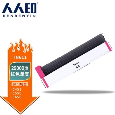 人人印 TN611红色粉盒适用柯尼卡美能达Konica Minolta Bizhub C451墨粉盒C550/C650复印机粉筒墨盒碳粉墨粉