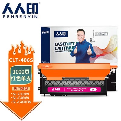 人人印 CLT-406S硒鼓适用三星CLP-360粉盒 365 366W CLX-3306 SL-C410W打印机墨盒 红色