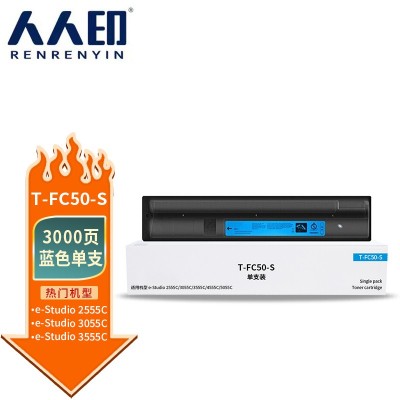 人人印 T-FC50-S蓝色粉盒 适用东芝TOSHIBA e-Studio 2555C 3055C 3555C 4555C 5055C打印机墨盒墨粉盒