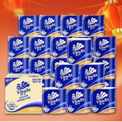 首页 > 办公用品 > 卫生用纸制品 > 维达(Vinda)卷纸 蓝色经典140克*27卷 4层加厚 卫生纸卷筒纸 纸巾卷纸 整箱