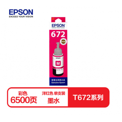 爱普生T672原装墨水洋红色单只装(适用L313/L211/L360/L380/L455/L385/L485/L565系列等)