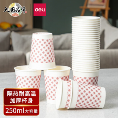 得力(deli)250ml(9盎司)加厚一次性杯子 水杯/纸杯 办公用品 9570 (单拍不发)