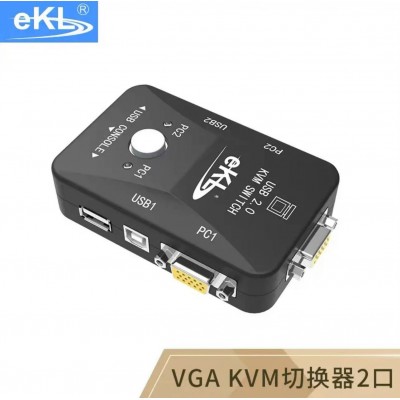 EKL kvm切换器 usb打印机显示器共享 2口自动usb分线切换器usb键鼠2进1出一进二出切换 含配线