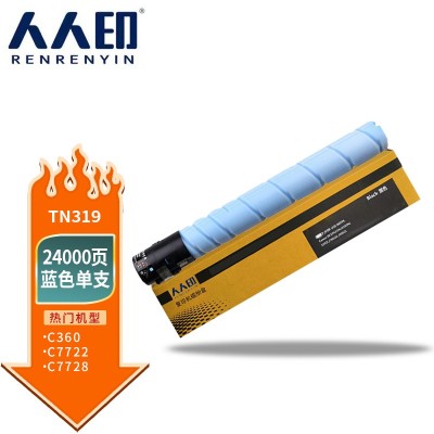 人人印 TN319/TN216蓝色粉盒适用柯美C360碳粉C7722 C7728柯尼卡美能达C226 C280 C220复印机墨盒打印机