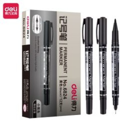 得力(deli) 6824 双头油性记号笔/签字笔/勾线笔/会议笔/马克笔 0.5/1.5mm 12支装 黑色