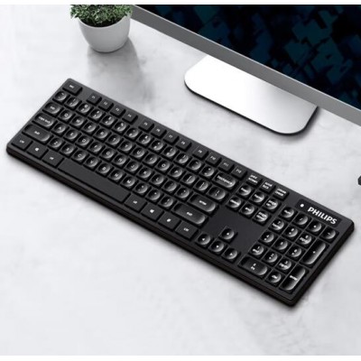 飞利浦(PHILIPS)SPK6103无线键盘 全尺寸键盘 防溅洒设计 商务办公家用键盘 笔记本电脑通用 黑色