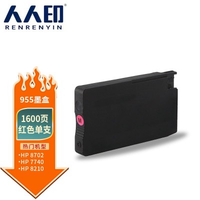 人人印 955XL墨盒红色 适用惠普7720 7730 7740 8210 8216 8218 8720 8725 8730 8740打印机 HP955打印机墨盒