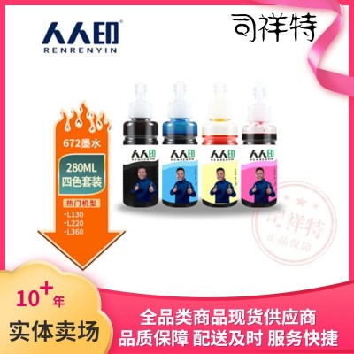 人人印672墨水70ml四色套装适用爱普生EPSONL360/L310/L380/L351/L130/L313/L301/L1300/L383打印机