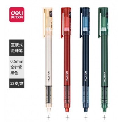 得力NS767纽赛直液式走珠笔0.5mm全针管(黑)(12支/盒)