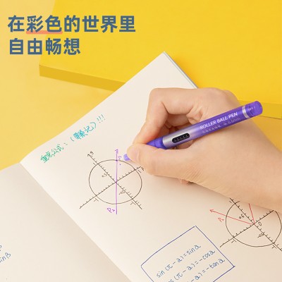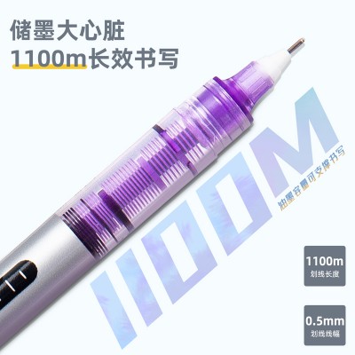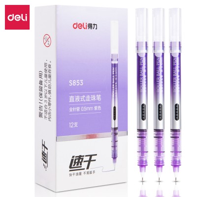 得力S853 经典办公中性笔 水笔签字笔 直液式水笔 软手握碳素笔 (紫)