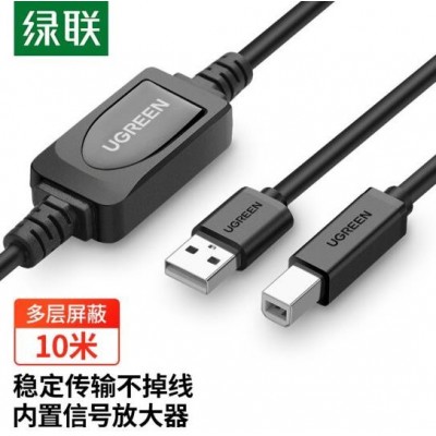 绿联(UGREEN)高速USB打印机数据线 2.0方口连接线AM/BM 适用佳能爱普生惠普打印机 带信号放大器10米 10374