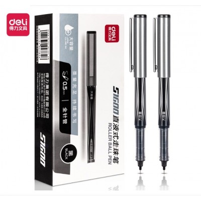 得力S1600直液式走珠笔0.5mm全针管(黑)(12支/盒)