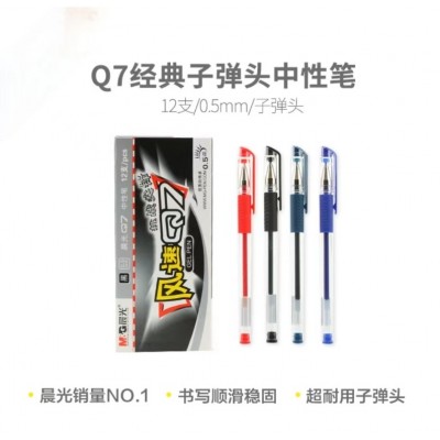 晨光(M&G)文具经典风速Q7/0.5mm红色中性笔 子弹头签字笔 办公用笔 拔盖水笔12支/盒