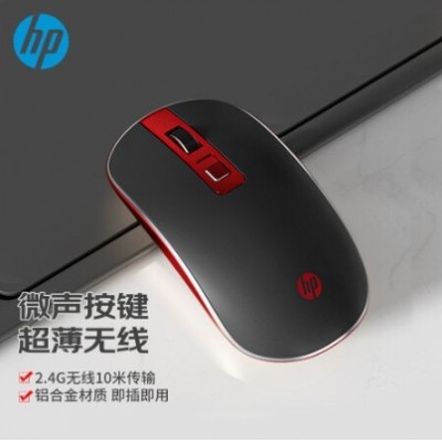 惠普(HP)无线金属鼠标s4000微声轻薄便携笔记本电脑 铝合金办公鼠标 1600DPI一键调节 红黑色