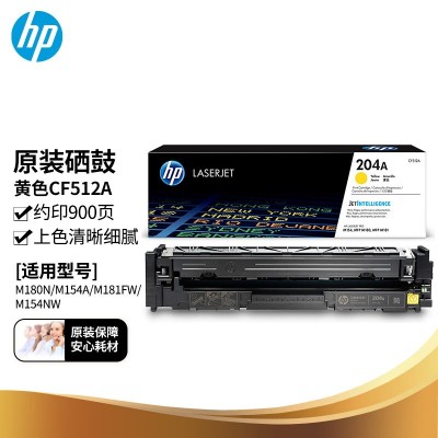 惠普(HP)CF512A原装黄色硒鼓204A(适用M180n/M181fw/M154a/M154nw打印机)印量900页