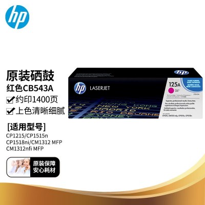 惠普CB543A原装红色硒鼓125A(适用CP1215/CP1515n/CP1518ni/CM1312 MFP/CM1312nfi MFP打印机)印量1400页