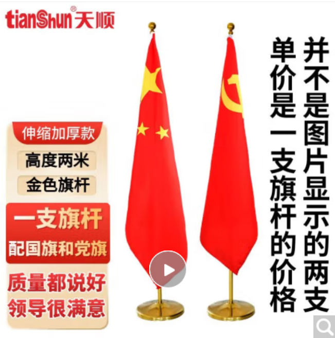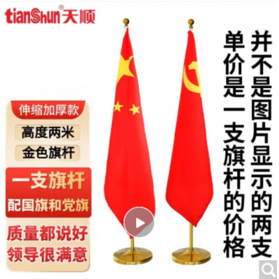 天顺 立式落地旗杆国旗党旗摆件办公室会议室党旗国旗摆件五星红旗国旗2米伸缩旗杆 2米金色伸缩加厚款(一支旗杆+国旗1面+党旗1面)