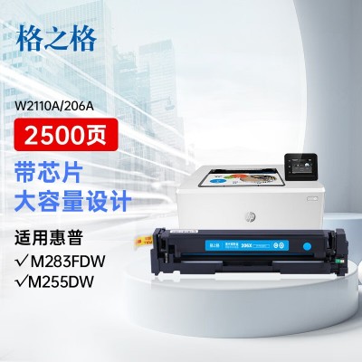 格之格206a硒鼓适用惠普m283fdw硒鼓 M255dw M255MFP M282nw M283cdw打印机粉盒 w2110a墨盒青色大容量带芯片