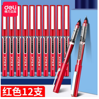 得力(deli) 直液式走珠笔中性笔直液笔0.5mm针管式学生用碳素水笔签字笔考试可用文具用品 S657 全针管直液笔 单支红色
