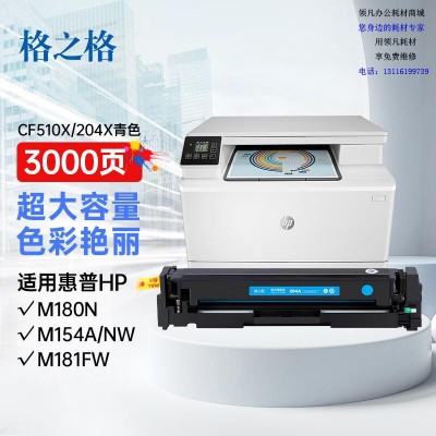 首页 > 办公用品 > 鼓粉盒 > 格之格 204a硒鼓适用惠普m180n硒鼓hp Color LaserJet Pro m181fw M154NW m154a cf510a超大容量青色带芯片 201365
