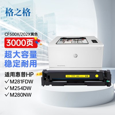 格之格适用惠普281fdw硒鼓hp202a硒鼓 m254dw m254nw m280nw m281fdn cf500a黄色带芯片超大容量打印机硒鼓