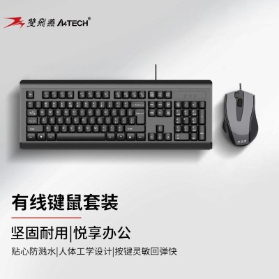 双飞燕(A4TECH)KB-N8510 键鼠套装 有线键盘鼠标套装 电脑办公鼠标键盘套装 笔记本外接薄膜键盘 黑色